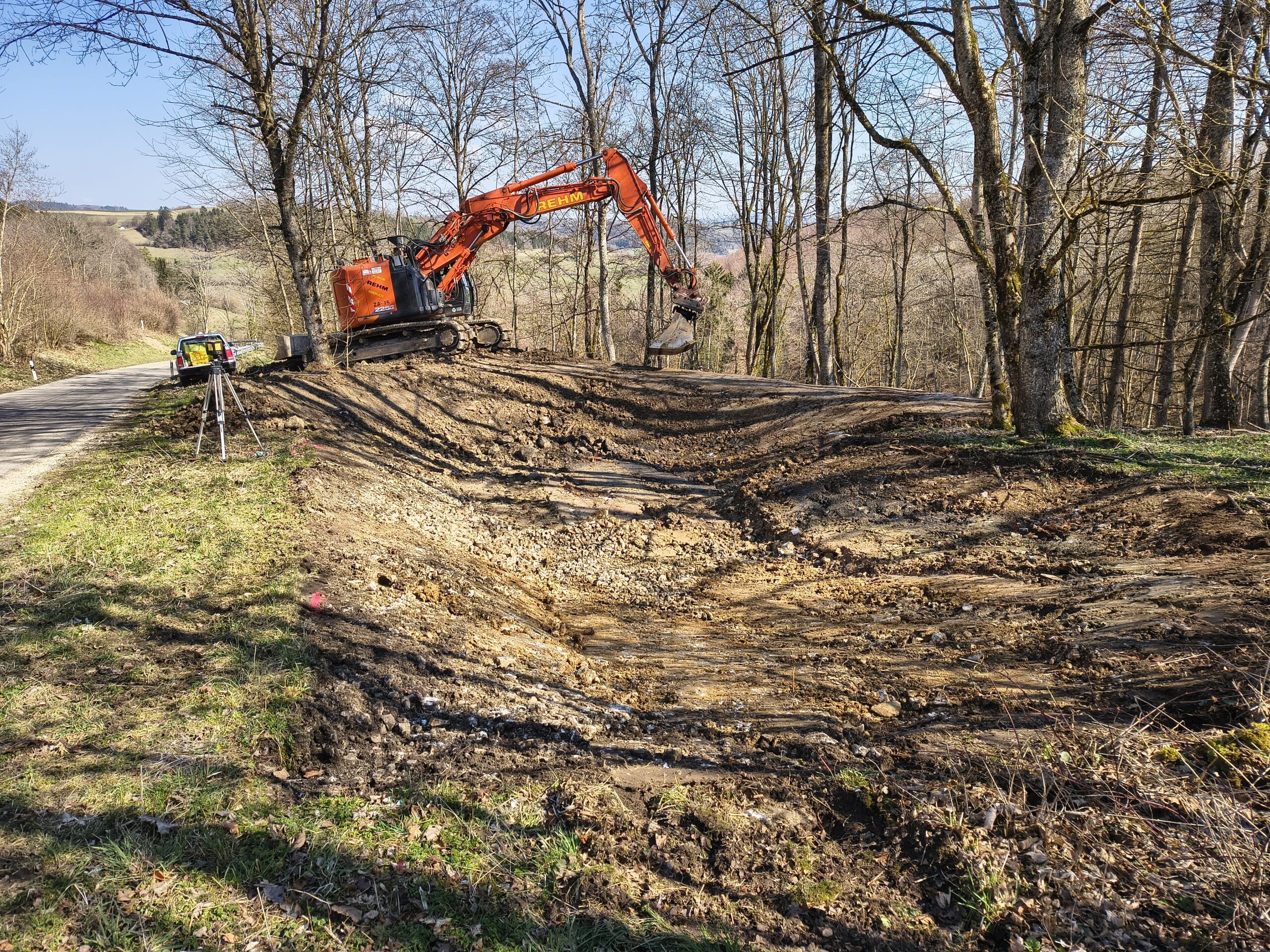 Retentionsmulden sind flache Geländevertiefungen, in denen Regenwasser zurückgehalten und kontrolliert in den Boden infiltriert wird. Dies reduziert den Oberflächenabfluss und Erosionsgefahren und trägt gleichzeitig zur Grundwasserneubildung bei. Im Zusammenspiel mit weiteren bereits umgesetzten Maßnahmen aus den Bereichen Agroforst und humusfördernde Bodenbewirtschaftung entsteht Schritt für Schritt eine klimaresiliente Landschaft, die Wasser besser speichern kann und widerstandsfähiger gegenüber Starkregenereignissen ebenso wie längeren Trockenphasen ist.